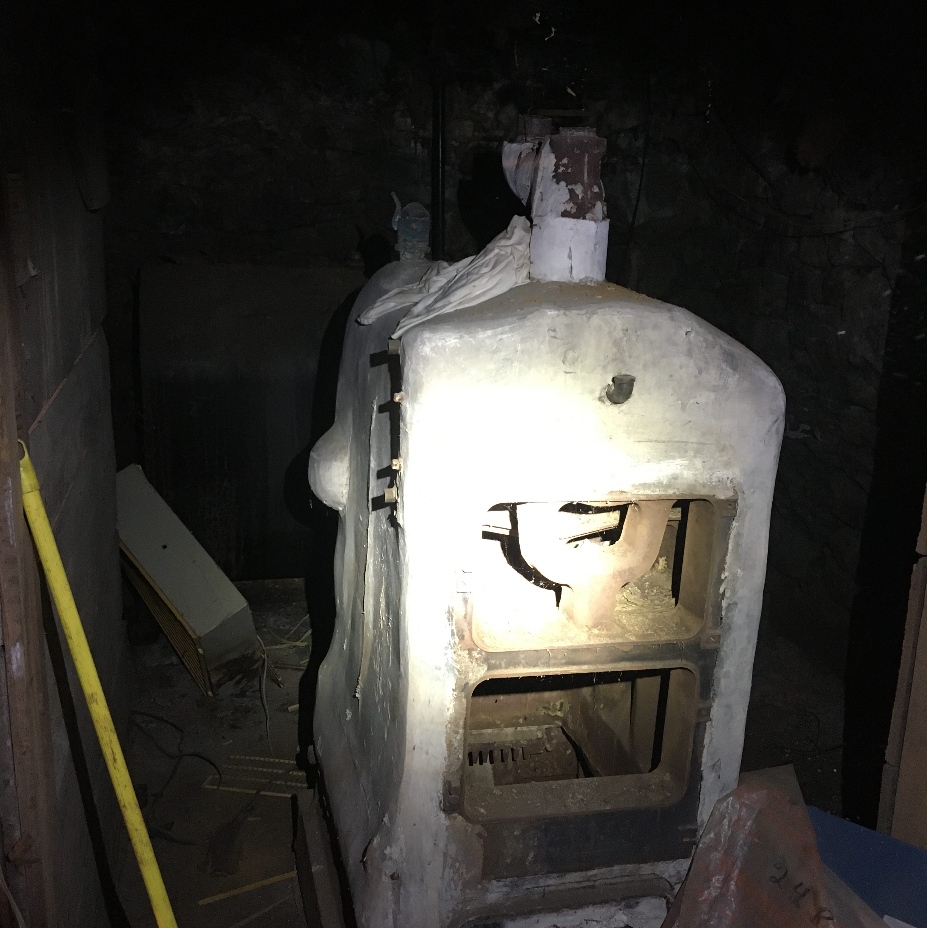 Coal or gas fired, these heating systems have been obsolete since Hawaii was still a territory, but we still see them in operation! This one however, should have been removed when the new heating system was installed.